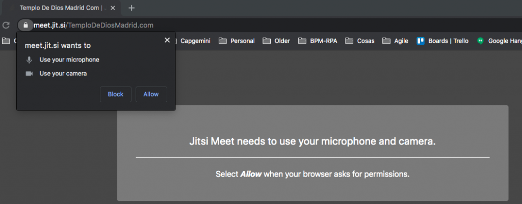 Tenemos que darle acceso para poder usarlo como sistema de videoconferencia. Es decir, pulsamos en «Permitir» o «Allow».